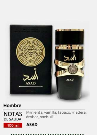 Asad es un perfume árabe especiado, perfecto para quienes buscan una fragancia potente y elegante. Su duración es de aproximadamente 8-10 horas, lo que lo hace ideal para noches y eventos sociales.