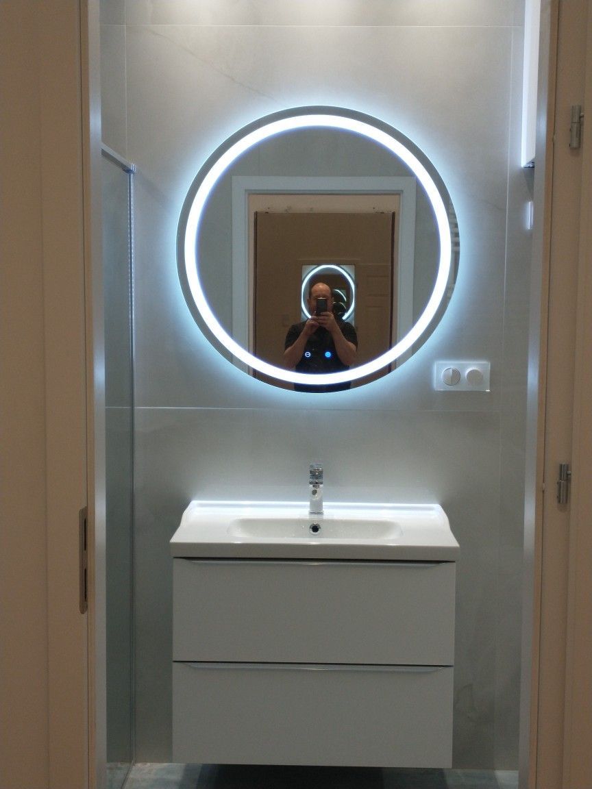 Iluminación LED: Incluyen una tira de luz perimetral que puede ofrecer diferentes temperaturas de color, como blanco frío (6000K), neutro (4000K) o cálido (3000K).