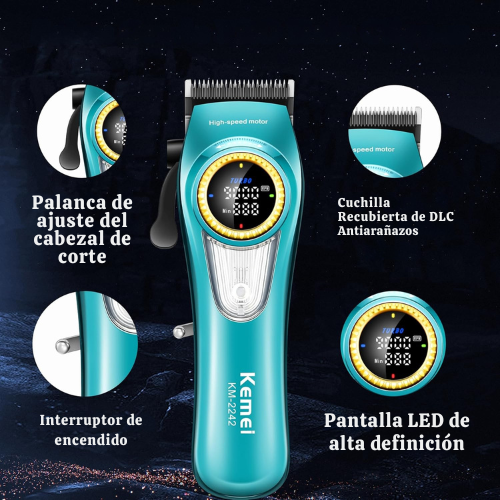 La Kemei KM-2242 es una cortadora profesional diseñada para ofrecer precisión, potencia y comodidad, ideal tanto para barberías como para uso personal en casa. Incorpora motor de alta velocidad, cuchillas de acero inoxidable y pantalla digital LED que muestra el nivel de batería y estado de uso. Ofrecemos un año de garantía.