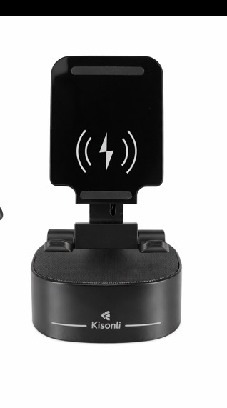 Soporte para teléfono con carga inalámbrica tiene cargador y parlante integrado para escuchar música