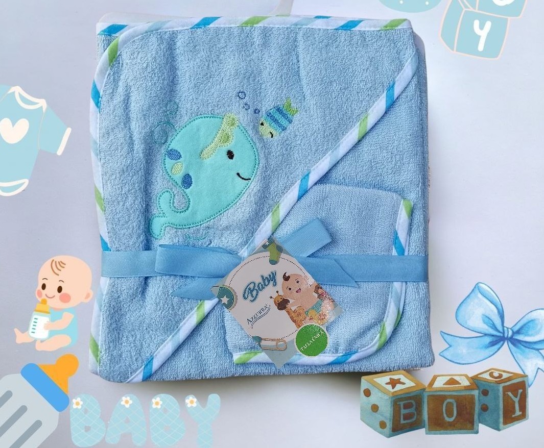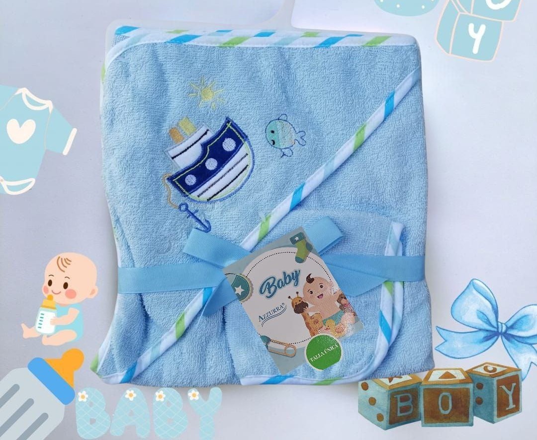 toalla con capucha para bebé de la marca Baby Boom es ideal para secar delicadamente a los más pequeños tras el baño.